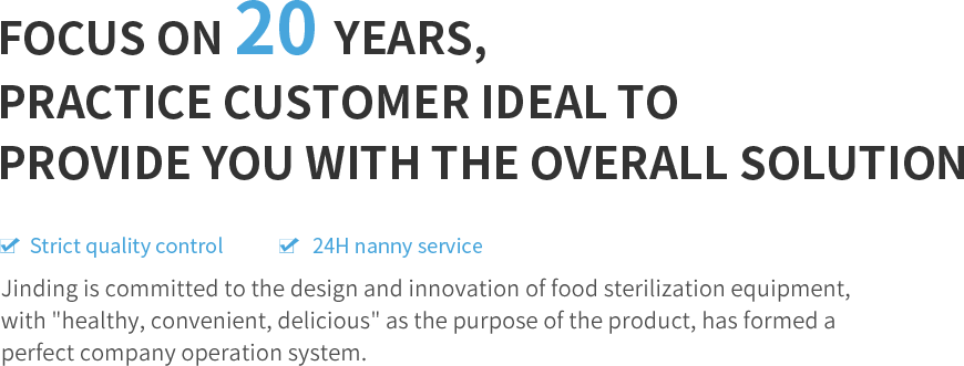 Company as a professional operator working in food sterilization equipment design, R&D, manufacturing, marketing services ; has formed a perfect management system including raw material supply, product development, process design, design of experiment, finished goods inspection, production storage transportation, technical services .